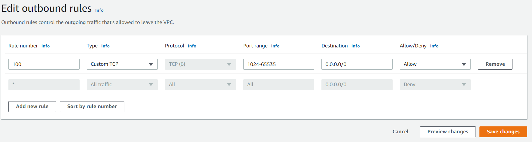 서브넷으로 들어온 주소 중 랜덤한 임시포트로 나갈 수 있는 범위 1024-65535 를 열어주어 나갈 수 있도록 해줍니다.