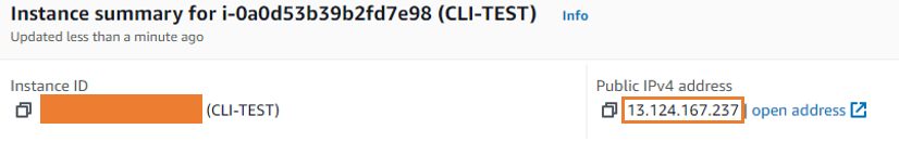 테스트용 EC2 가 바로 생성되며 할당된 퍼블릭 IP 를 가져올 수 있습니다.