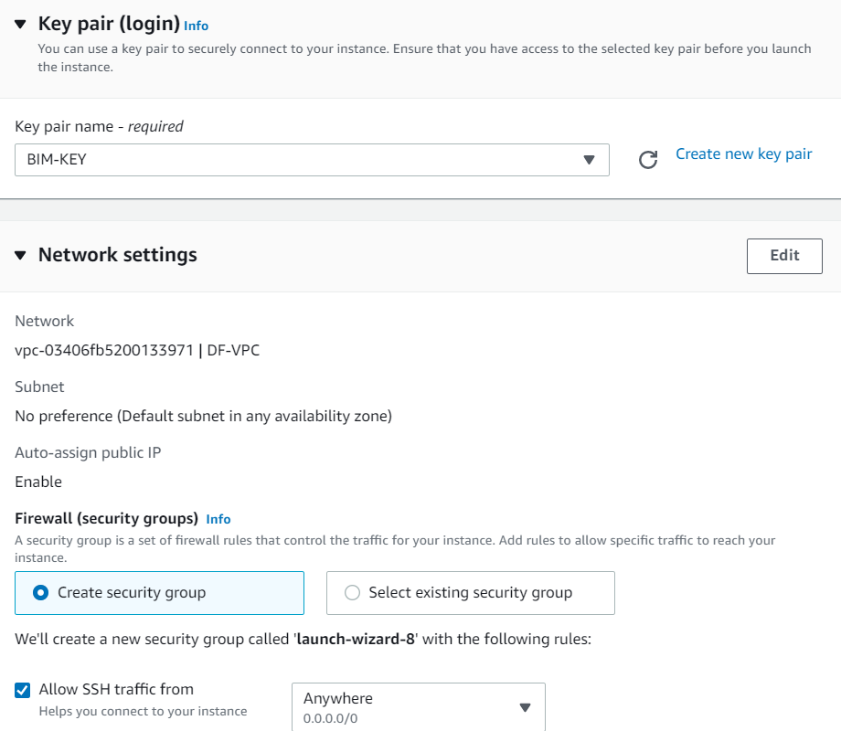 사용할 키를 선택하고 나머지 네트워크들은 기본값으로 해서 바로 생성 합니다.
