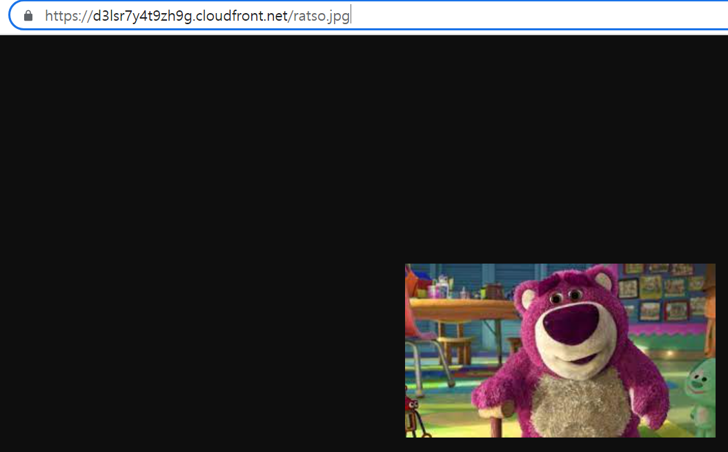 클라우드 프론트 도메인주소 하위주소로 ( /ratso.jpg ) S3 버킷에 업로드 시켰던 파일 이름을 넣어주면 이렇게 접근 할 수 있습니다.