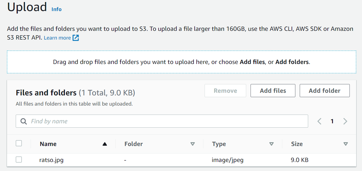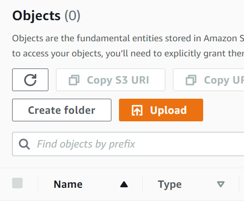 버킷이 생성되면 버킷으로 들어가 업로드 버튼을 눌러줍니다.