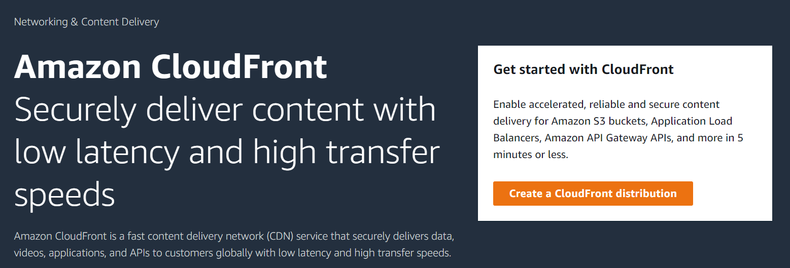 AWS 에서 제공하는 CDN ( Contents Delivery Network ) 서비스 입니다. 엣지 로케이션을 이용하여 정적이나 동적 컨텐츠 파일들을 사용자에게 빨리 배포할 수 있게 도와줍니다. 가장 가까운 엣지 로케이션에 파일들이 저장되어 서버와 사용자 사이의 물리적 거리를 줄여주어 콘텐츠 로드 지연시간을 최소화 시킬 수 있습니다.
