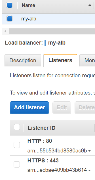 HTTP/HTTPS 포트를 리스너로 추가해주었습니다.
