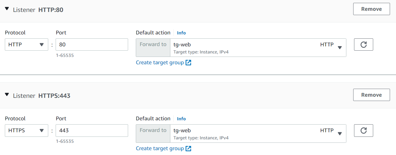 타켓 그룹을 생성 한 뒤 생성한 타켓그룹을 눌러서 다음과 같이 80,443 포트를 적어주고