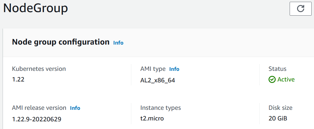 약 3분 뒤에 생성된 노드그룹의 상태가 active 로 변경 되었습니다.