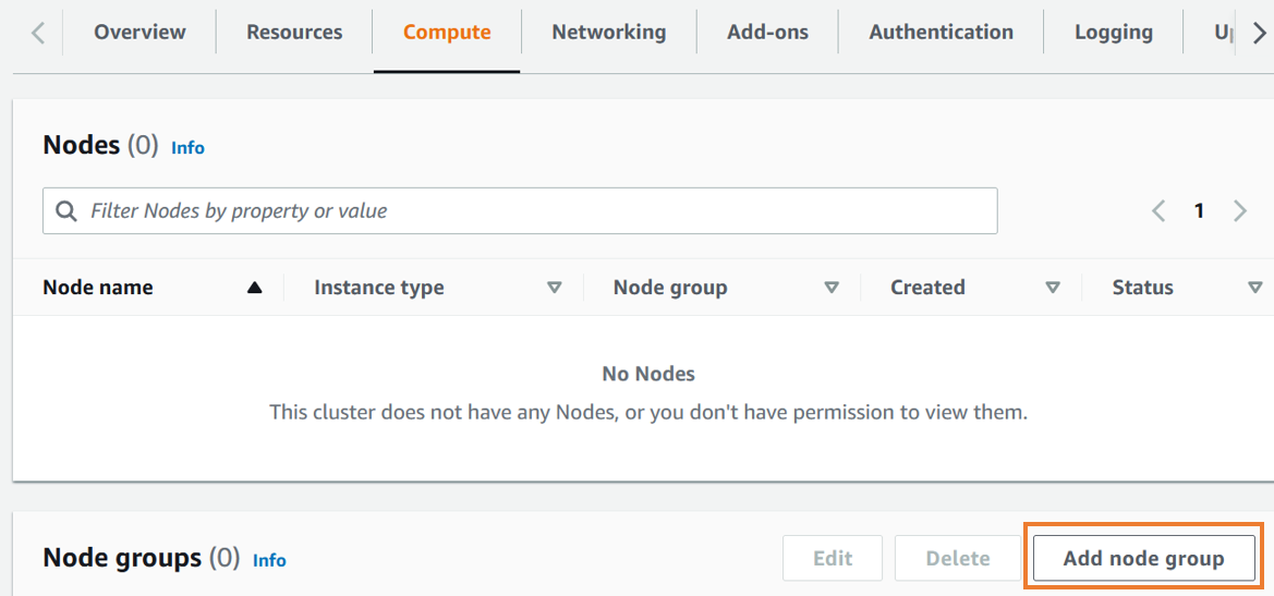 Compute 로 가서 노드그룹을 새로 생성 해 보겠습니다.