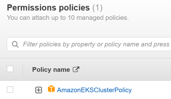 AWS service 옵션의 EKS- Cluster 를 선택 해 줍니다.