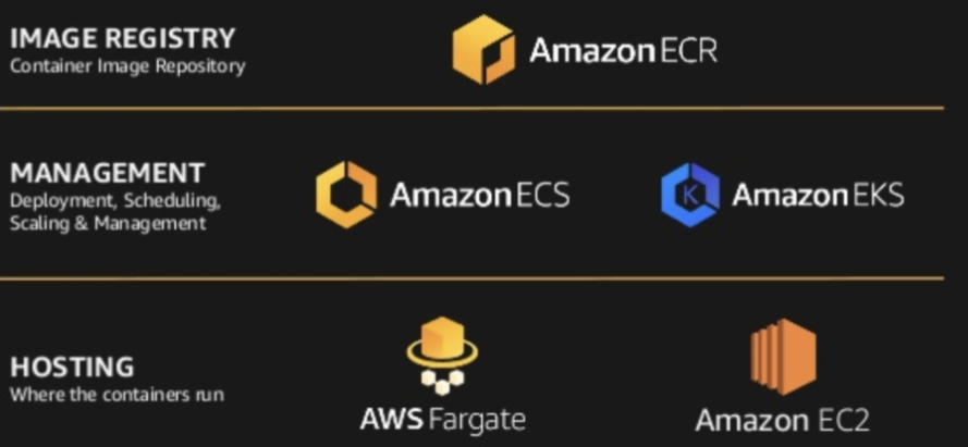 AWS 에는 컨테이너 오케스트레이션 서비스로 ECS / EKS 가 있습니다.