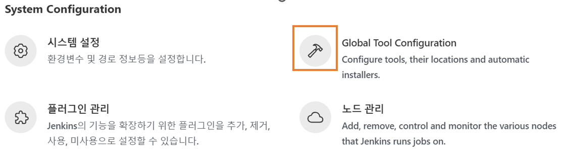 시스템 관리의 global tool configuration 으로 들어 가 줍니다.