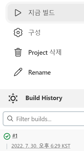 지금 빌드를 누르면 하단의 빌드된 프로젝트가 빌드된 시간과 함께 나오는데 이를 클릭 해 봅니다.