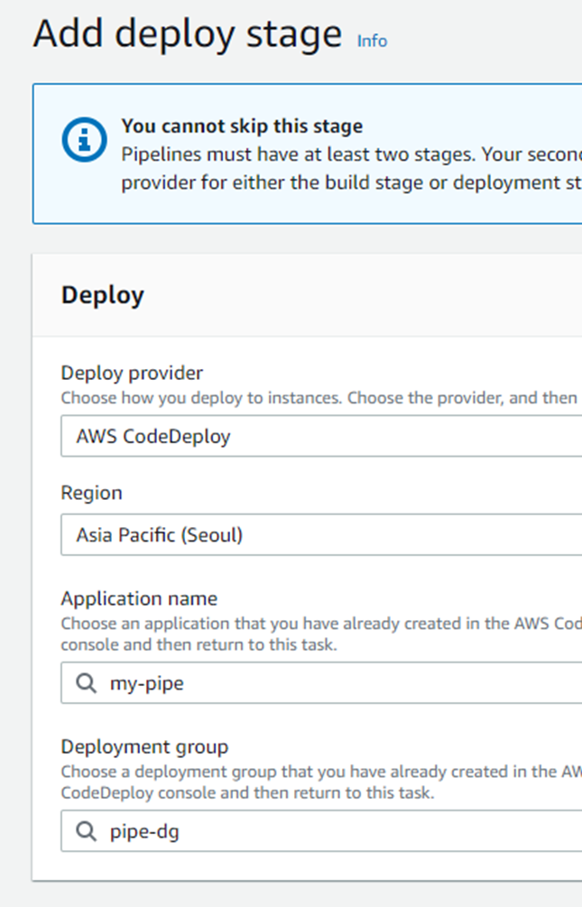 deploy 단계에선 이전 생성 해 주었던 app 과 그룹들을 연결 시켜 줍니다.
