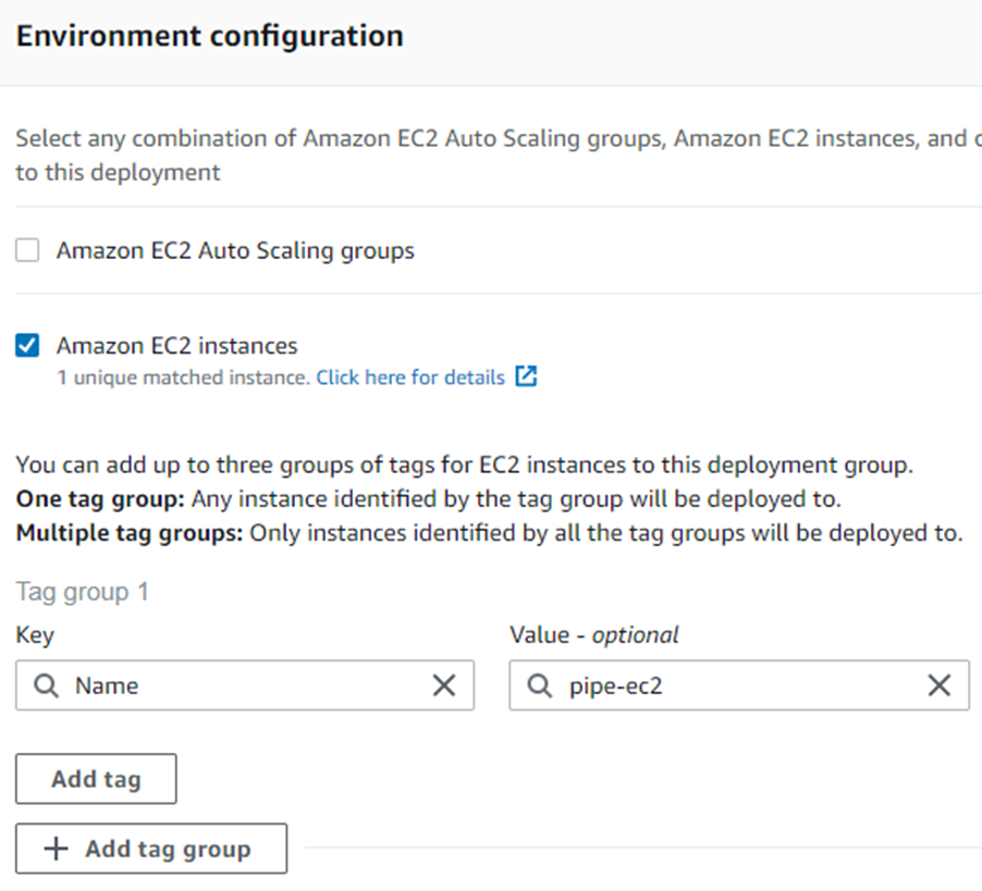 환경 설정에는 파이프라인을 위해 설정해둔 ec2 를 연결 해 줍니다.