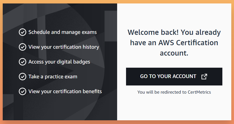 AWS 자격증 공식 사이트에서 계정을 생성하고 시험을 예약하고 관련 준비를 할 수 있습니다.