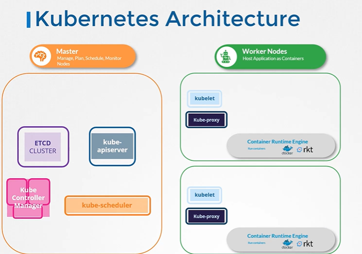마스터 노드 - Kube-apiserver --> ETCD/ 스케쥴러/컨트롤러 매니저(노드 컨트롤러/레플리케이션 컨트롤러)