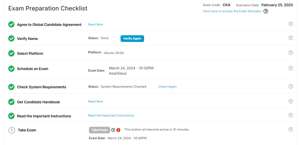 CKA 시험 접수 후 해당 링크로 들어가면 고난이도 시험문제로 구성된 시험세트에 접속할 수 있습니다.